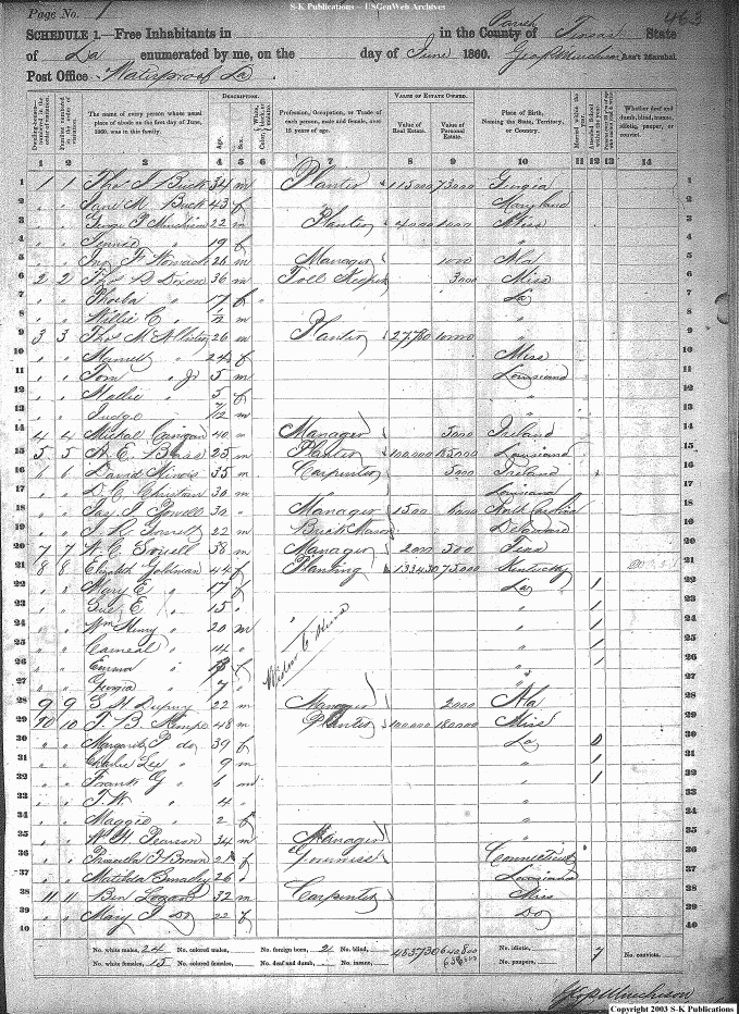 TENSAS PARISH LA 1860 FEDERAL CENSUS IMAGES